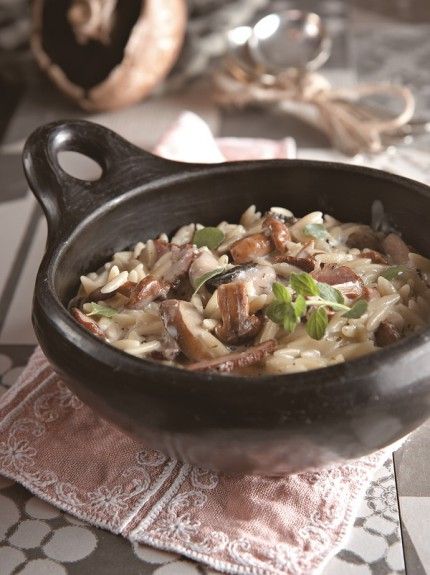 Κριθαράκι με μανιτάρια σύγκλινο και γραβιέρα
